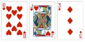 Kombinasi dari 3 kartu dengan total jumlah kartu adalah 20 dan 30 dengan kartu Q J K memiliki nilai 10.